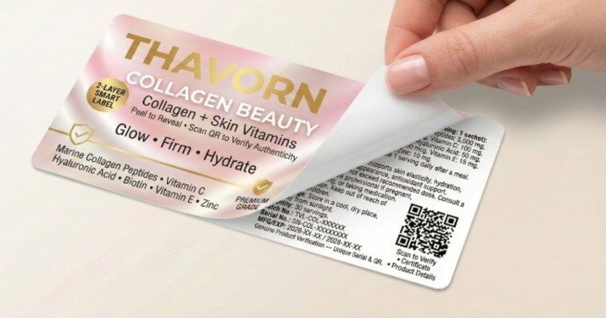 สติ๊กเกอร์ 2 ชั้น คือฉลากแบบลอกเปิดได้ ที่ช่วยเพิ่มพื้นที่ข้อมูลสินค้าโดยไม่ต้องขยายขนาดบรรจุภัณฑ์ เหมาะกับอาหารเสริม เครื่องสำอาง และสินค้าที่ต้องใส่ข้อมูลจำนวนมาก